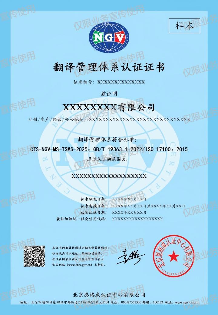 CTS-NGV-MS-TSMS-2025《翻译管理体系 基本要求》和GB/T 19363.1-2022/ISO 17100:2015《翻译服务 第1部分:笔译服务要求》