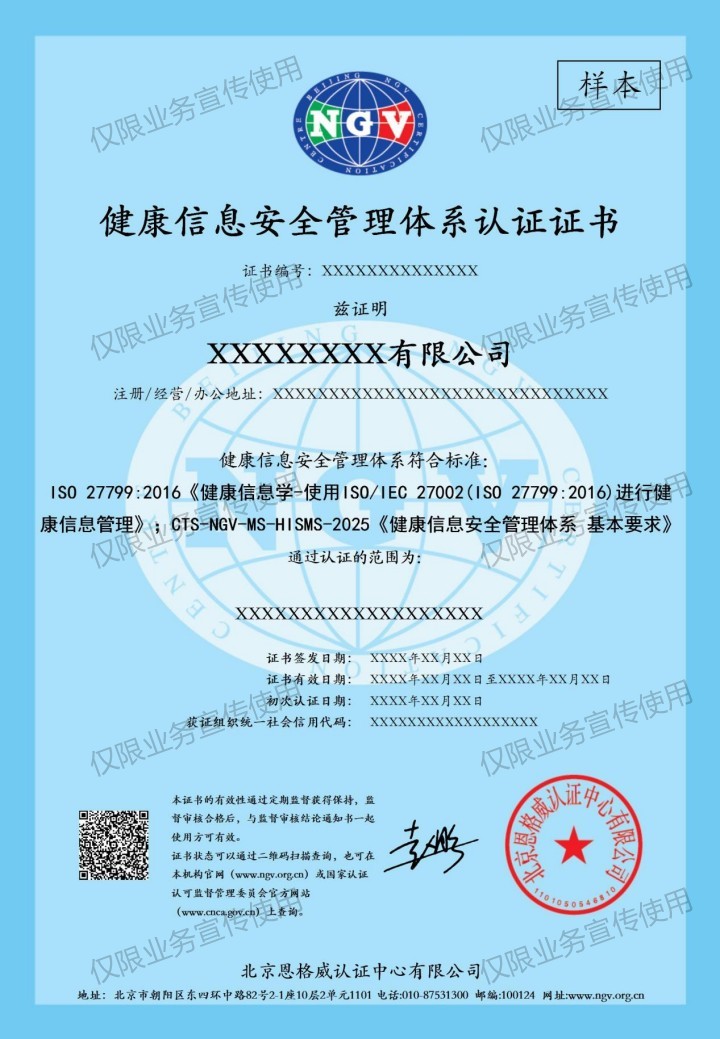 ISO 27799:2016《健康信息学-使用ISO/IEC 27002(ISO 27799:2016)进行健康信息管理》和CTS-NGV-MS-HISMS-2025《健康信息安全管理体系 基本要求》