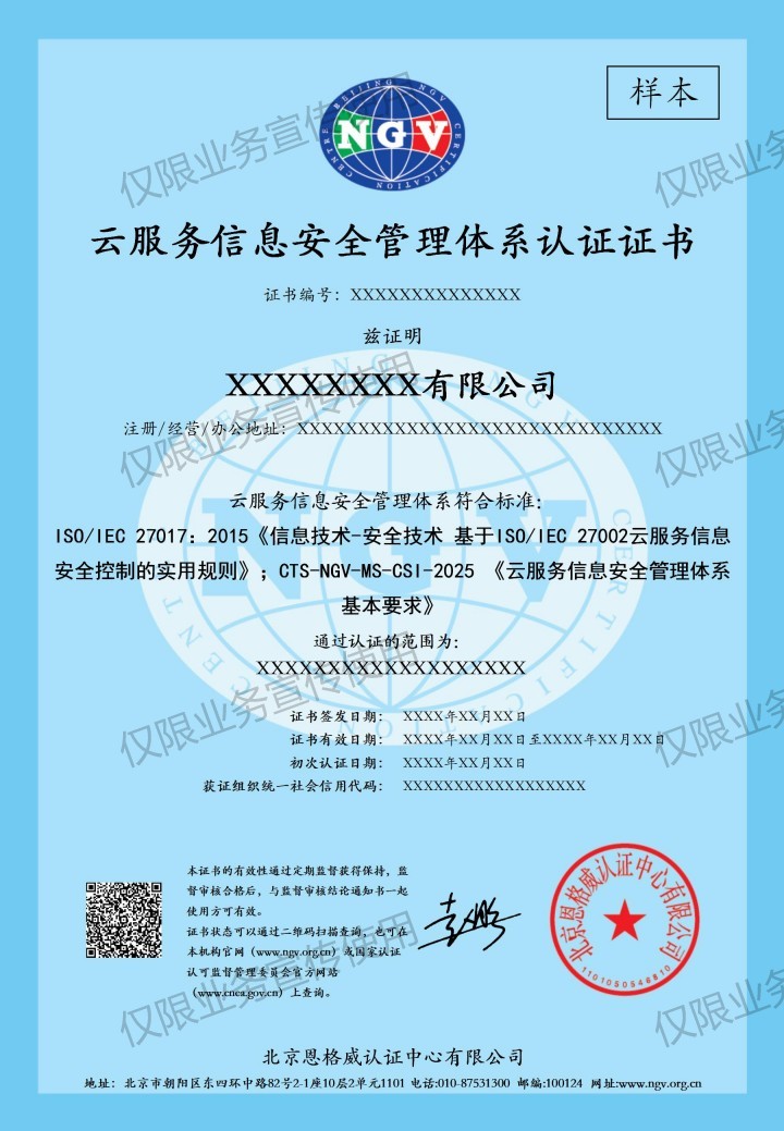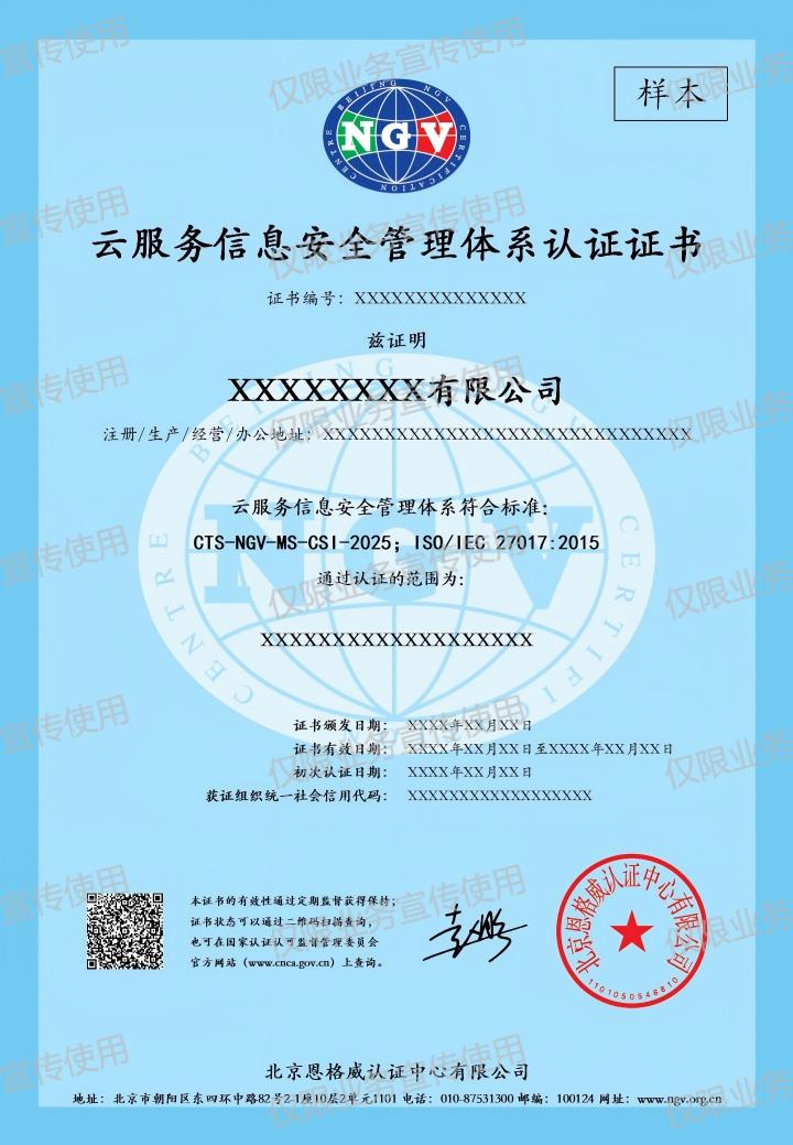 CTS-NGV-MS-CSI-2025 《云服务信息安全管理体系 基本要求》和ISO/IEC 27017:2015《信息技术-安全技术 基于ISO/IEC 27002云服务信息安全控制的实用规则》