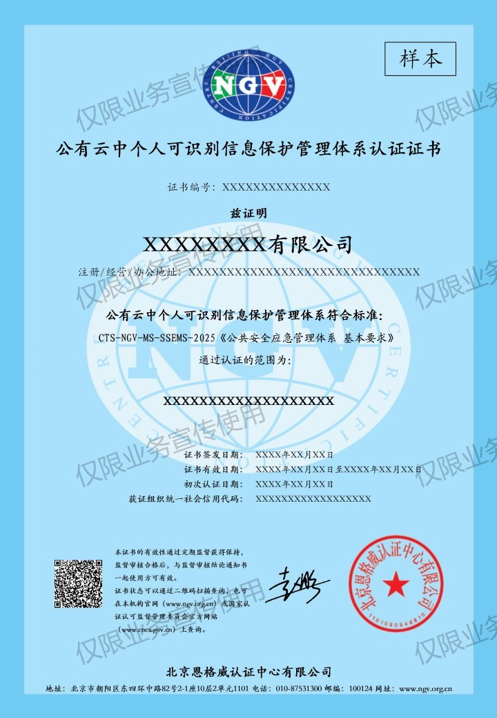 认证标准:CTS-NGV-MS-PCIP-2025 《公有云中个人可识别信息保护管理体系 基本要求》