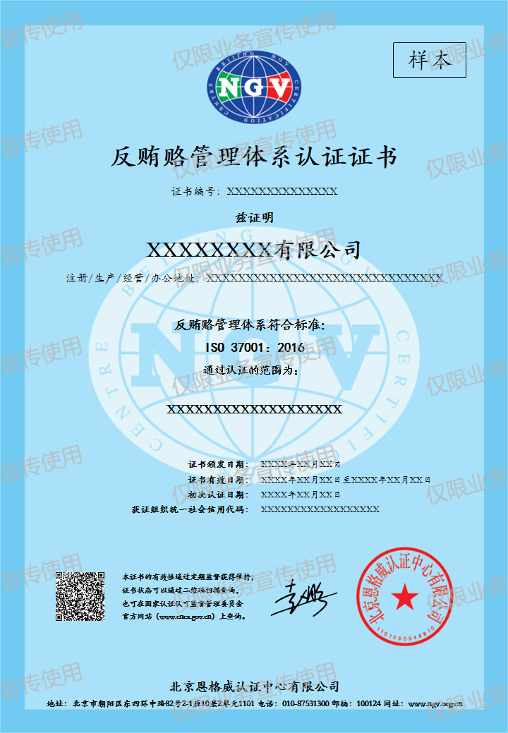 反贿赂管理体系认证证书已经成为一些国际和国内招标采购的条件或考虑因素;