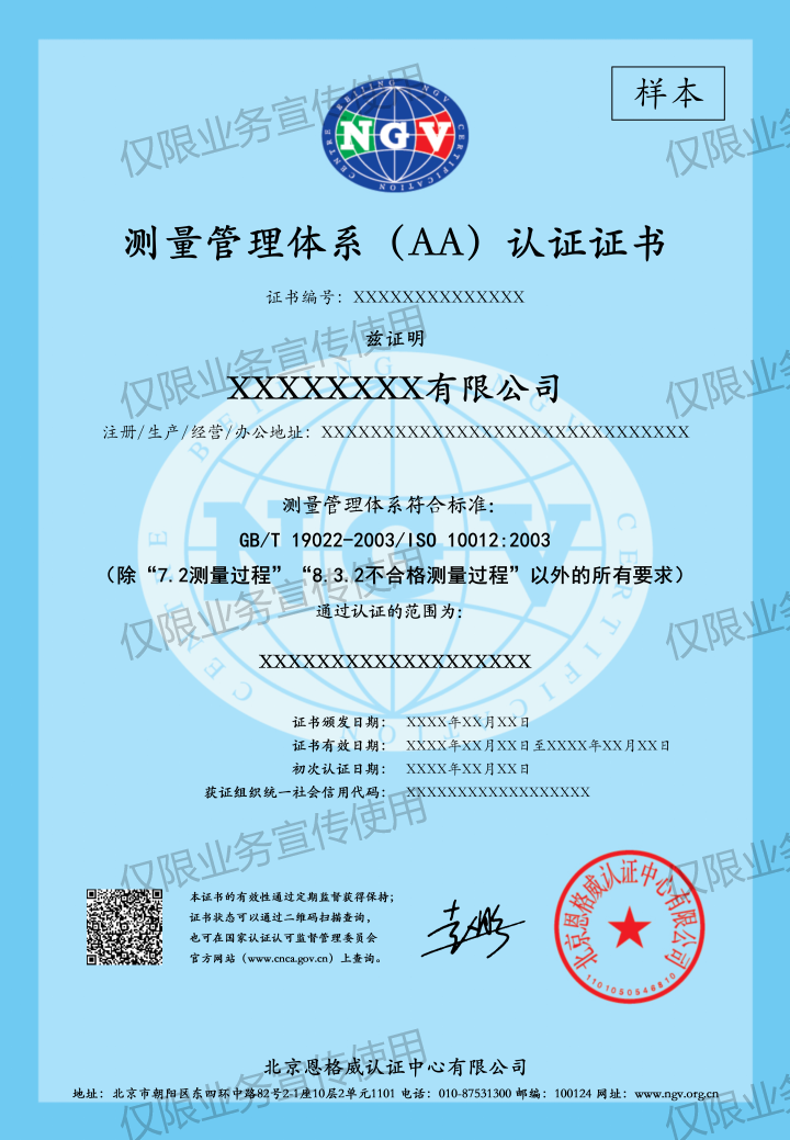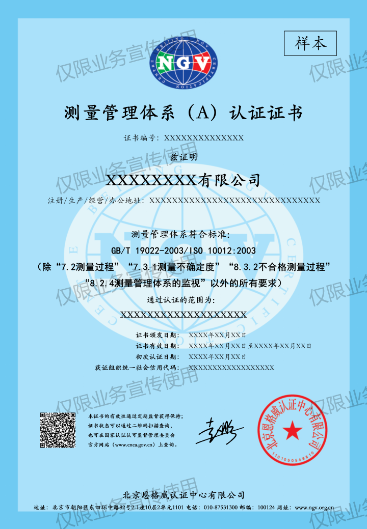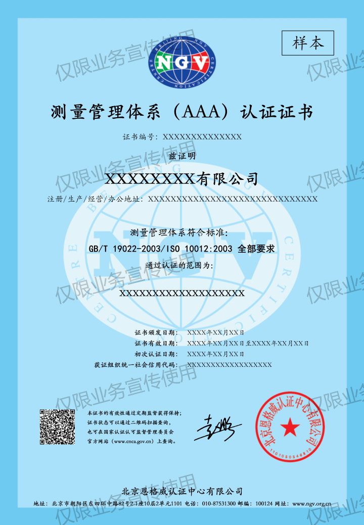 3.企业在测量管理能力的有效证明,获取国内、外市场对企业测量管理能力的认可。
