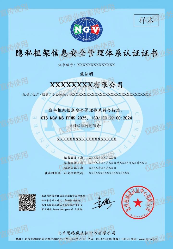 名称:隐私框架信息安全管理体系认证规则