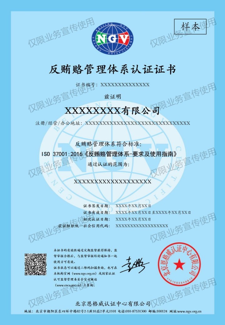 反贿赂管理体系认证证书已经成为一些国际和国内招标采购的条件或考虑因素;